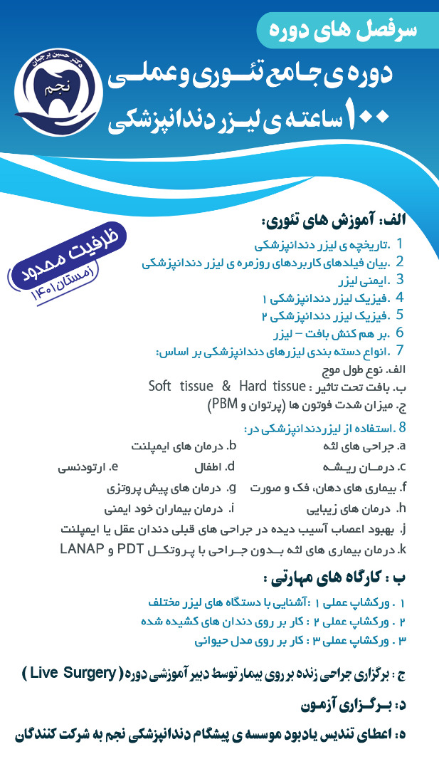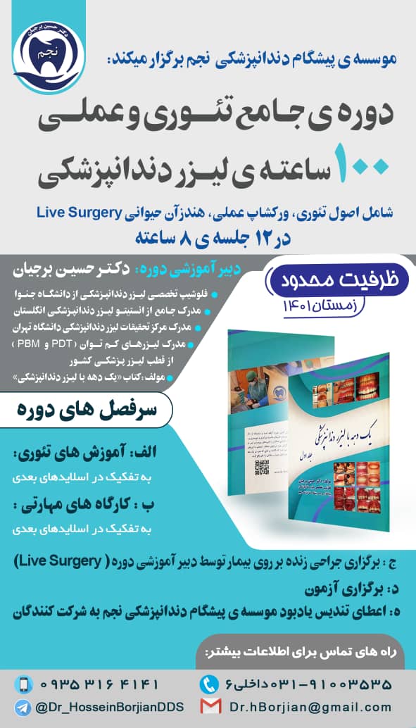 *دوره ی جامع تئوری و عملی ۱۰۰ ساعته ی لیزر دندانپزشکی*